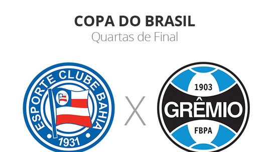 Bahia e Grêmio definem na noite desta quarta-feira quem será semifinalista da Copa do Brasil. Os tricolores se enfrentam às 19h15 (de Brasília), na Arena Fonte Nova, em Salvador. O jogo de ida terminou empatado em 1 a 1. Com isso, quem vencer leva a vaga. Em caso de empate, a decisão sairá das cobranças de pênaltis.
